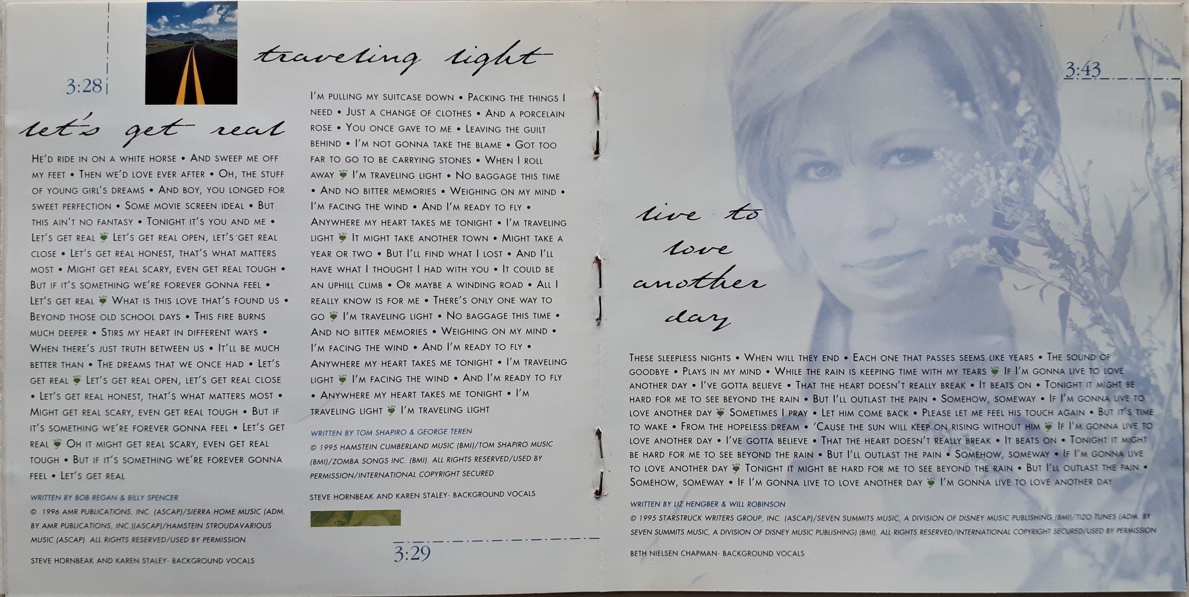 Give Me Some Wheels (2:37) / Feeling 'Bout You (3:35) / Let's Get Real (3:28) / Traveling Light (3:29) / Live To Love Another Day (3:43) / No Way Out (3:19) / Fall (4:01) / Saying Goodbye To A Friend (3:29) / She Said, He Heard (3:54) / Far And Away (3:43)