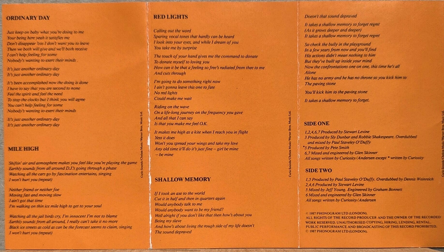 Ordinary Day / Mile High / Red Lights / Shallow Memory / Ordinary Day (Extraordinary Mix) / Mile High (Mile Long Mix)