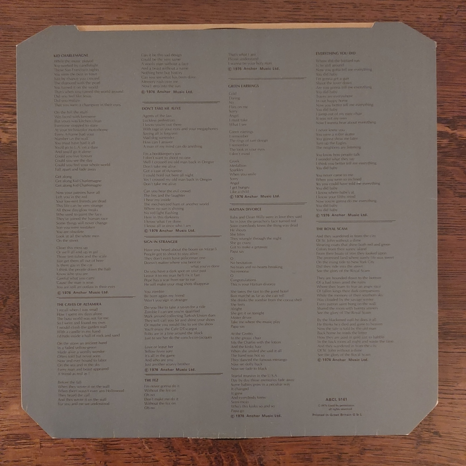 1976 1st UK pressing with cut-cornered printed card inner